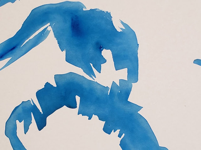 Here the overall map to the composition has been established. My thought process was to get the shapes and values right the first time. I envisioned a calligraphic approach to the application of watercolor.