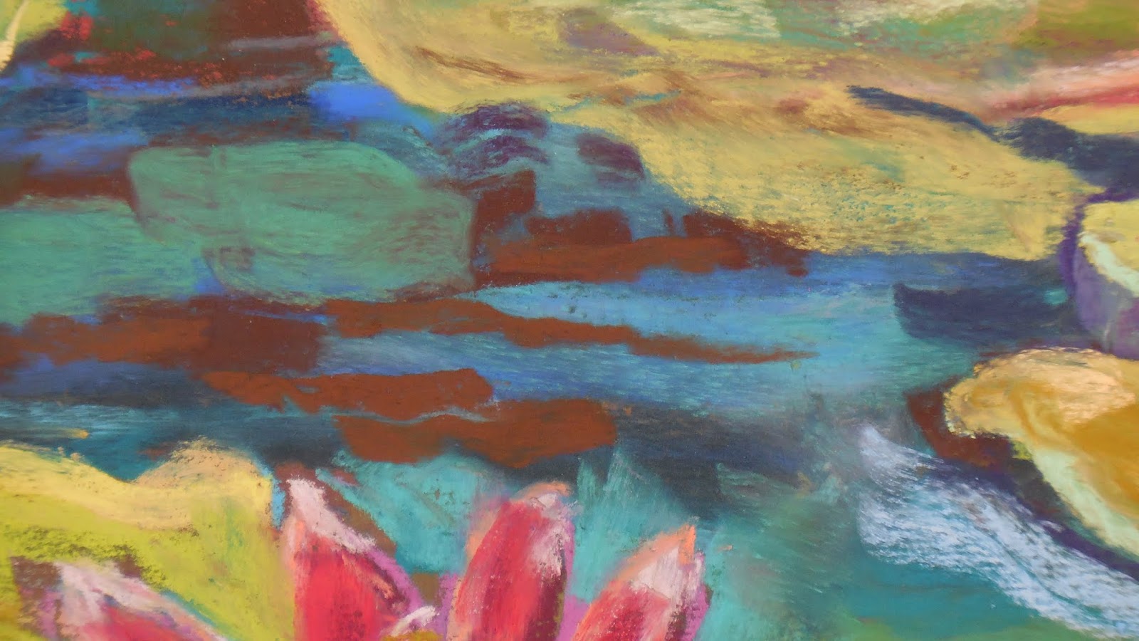 Adjusting shapes and values to more closely represent my subject.The first application of pastel intended to push the composition further along by fleshing out the shapes and values. The application of color at this point was intended to further the development of the under painting.